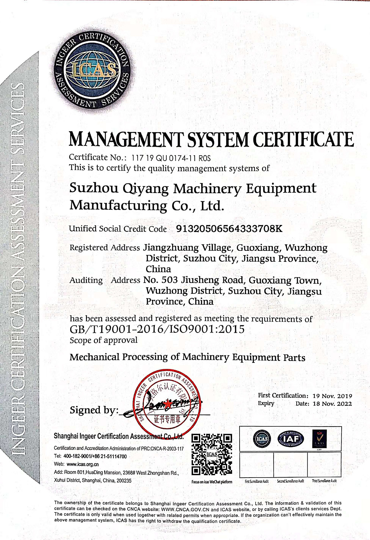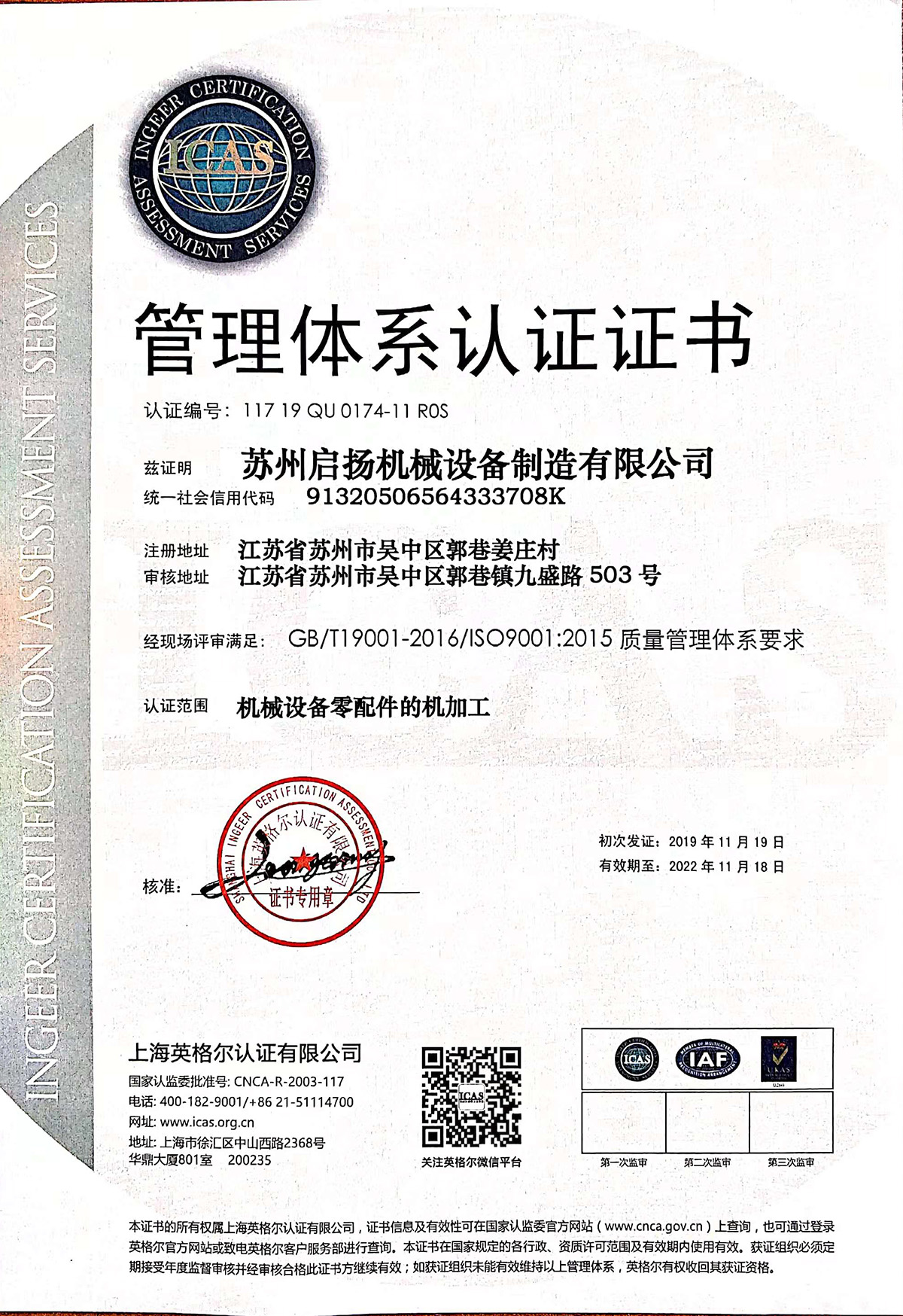 管理体系认证证书
